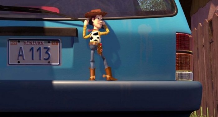 Το Α113 άρχισε να εμφανίζεται σε διαφορετικά σημεία, σε άσχετα πλάνα διαφορετικών ταινιών, αρχής γενομένης από το «Toy Story», όπου εντοπίστηκε για πρώτη φορά σε πινακίδα αυτοκινήτου.